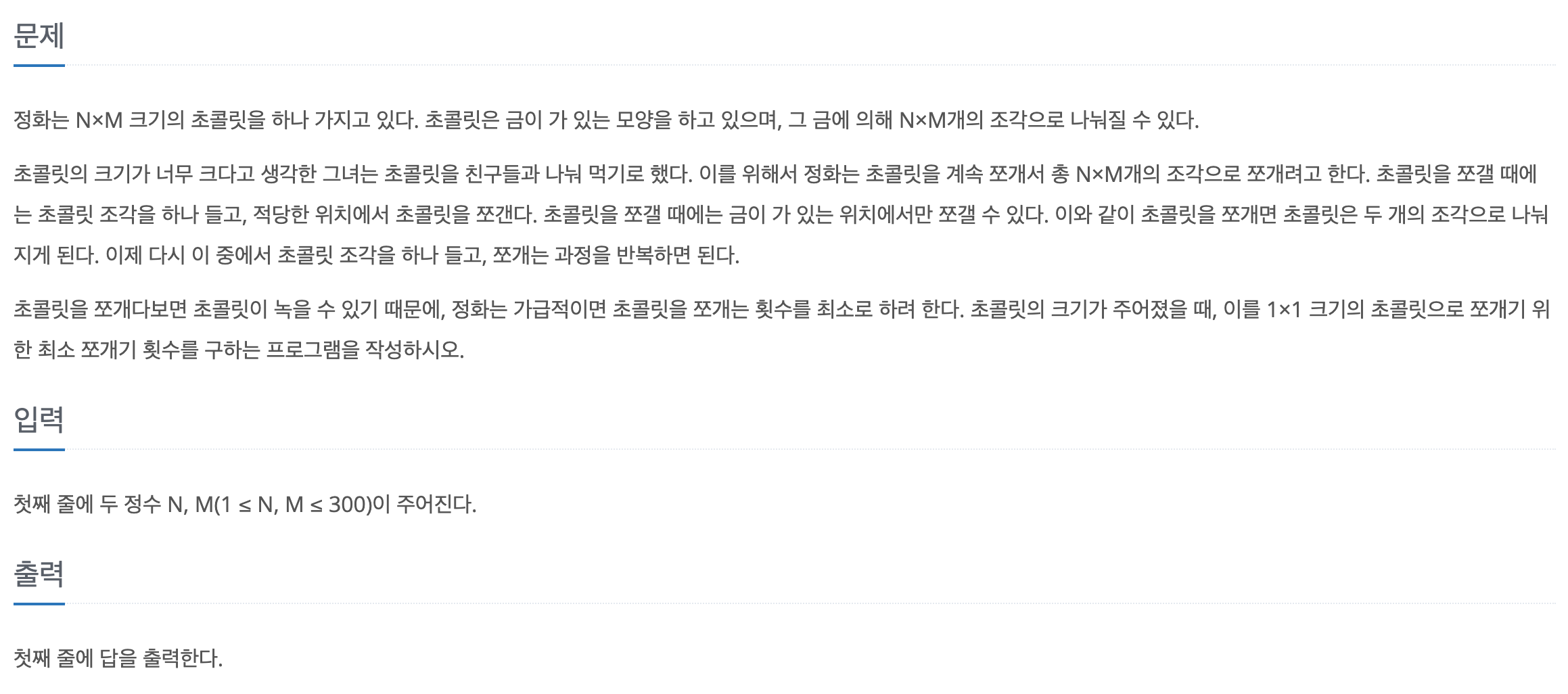 [BaekJoon/Java] 2163. 초콜릿 자르기 - A0312022_PPS/2주차 2023. 1. 5. 00:51